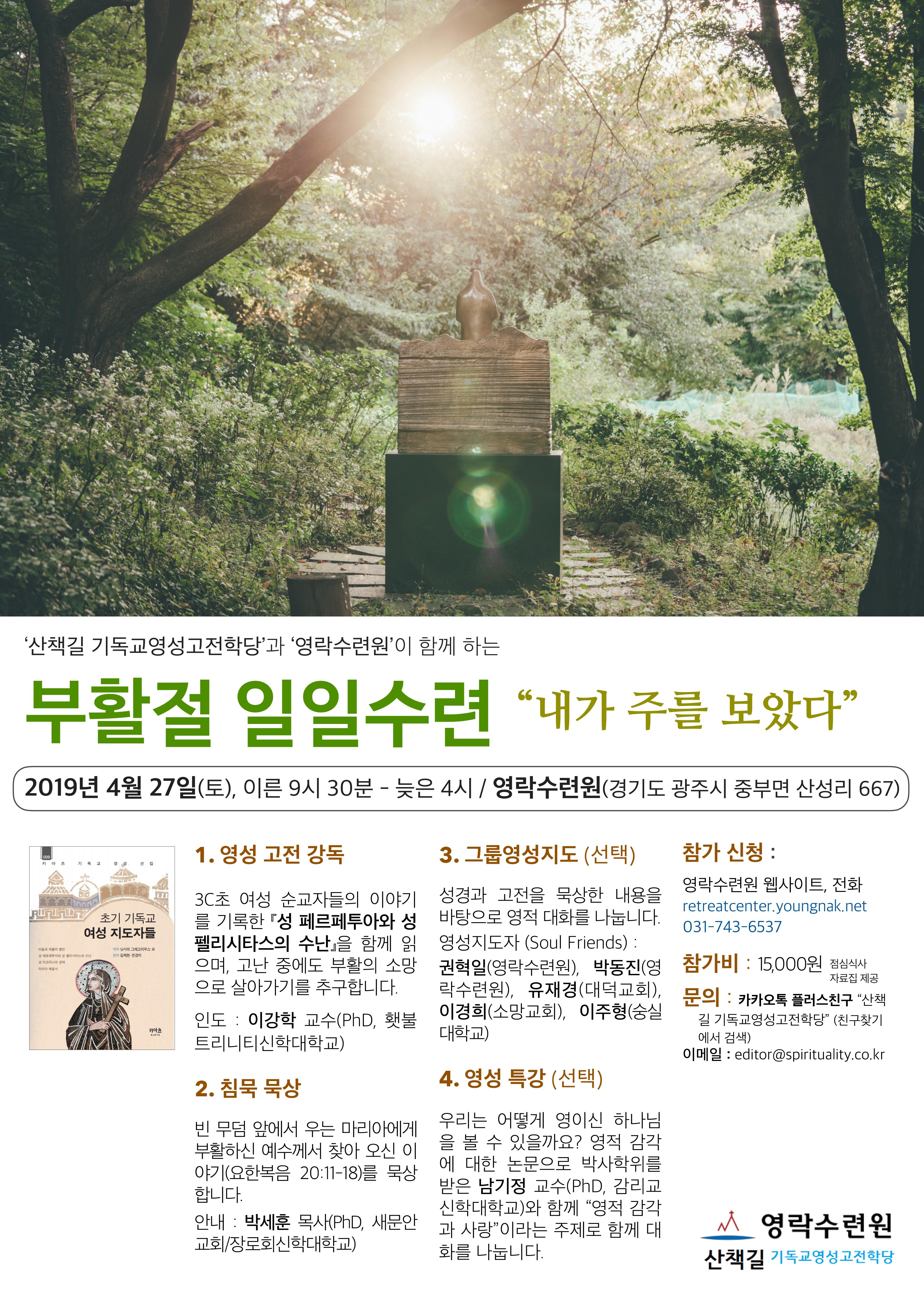 2019년 부활절 일일수련이 열립니다.