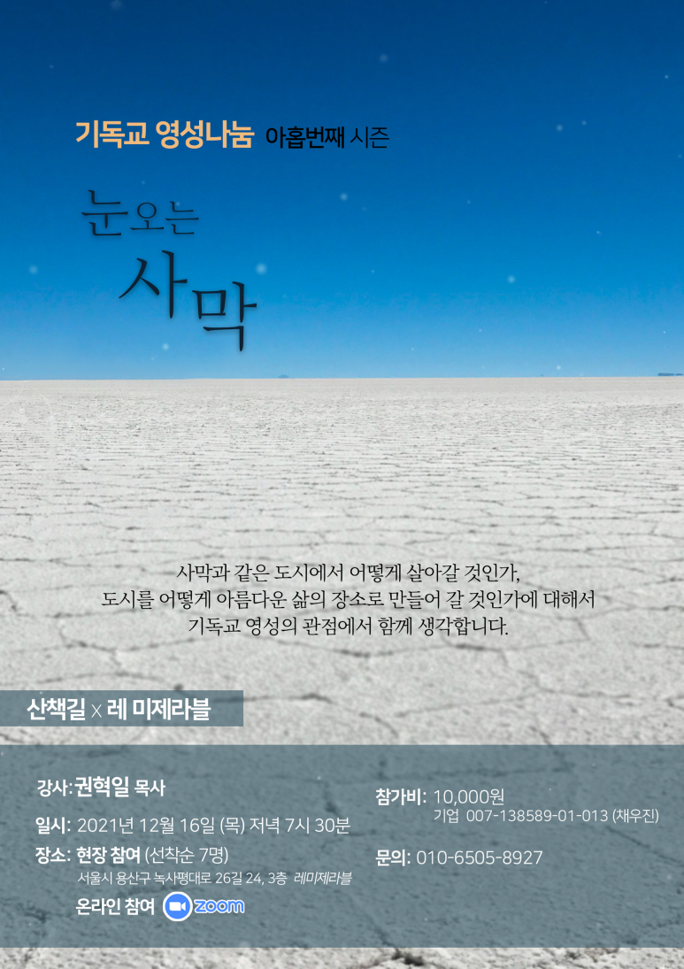 * 일 시 : 2021. 12. 16.(목) 저녁 7:30